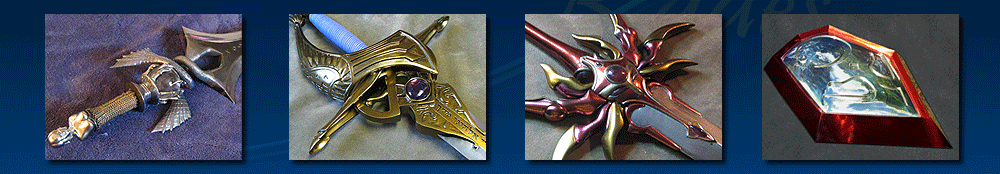 These are all the blades I’ve made so far. They are all made with resin, aluminum reinforced, and finished with automotive paint. They are completely accurate to the game or anime they appear in, and are perfect for cosplay or wall mounting.